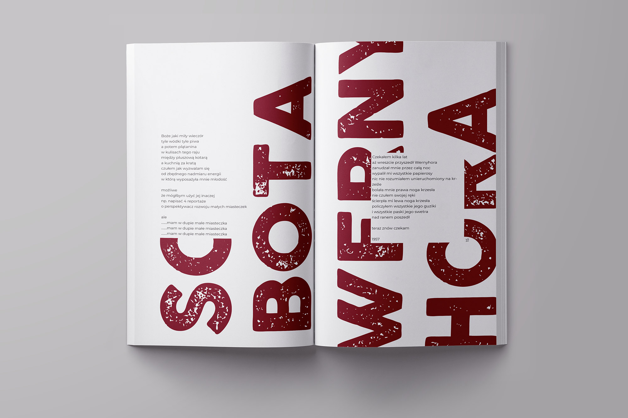 The main idea of this task was to design the cover and the spreads only using typographic elements. So I chase to play with the readability and position on the titles integrating them with the poems, and applying the concept to the cover.