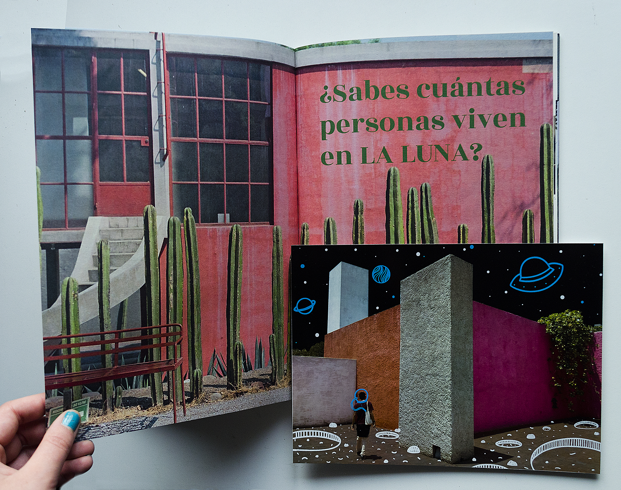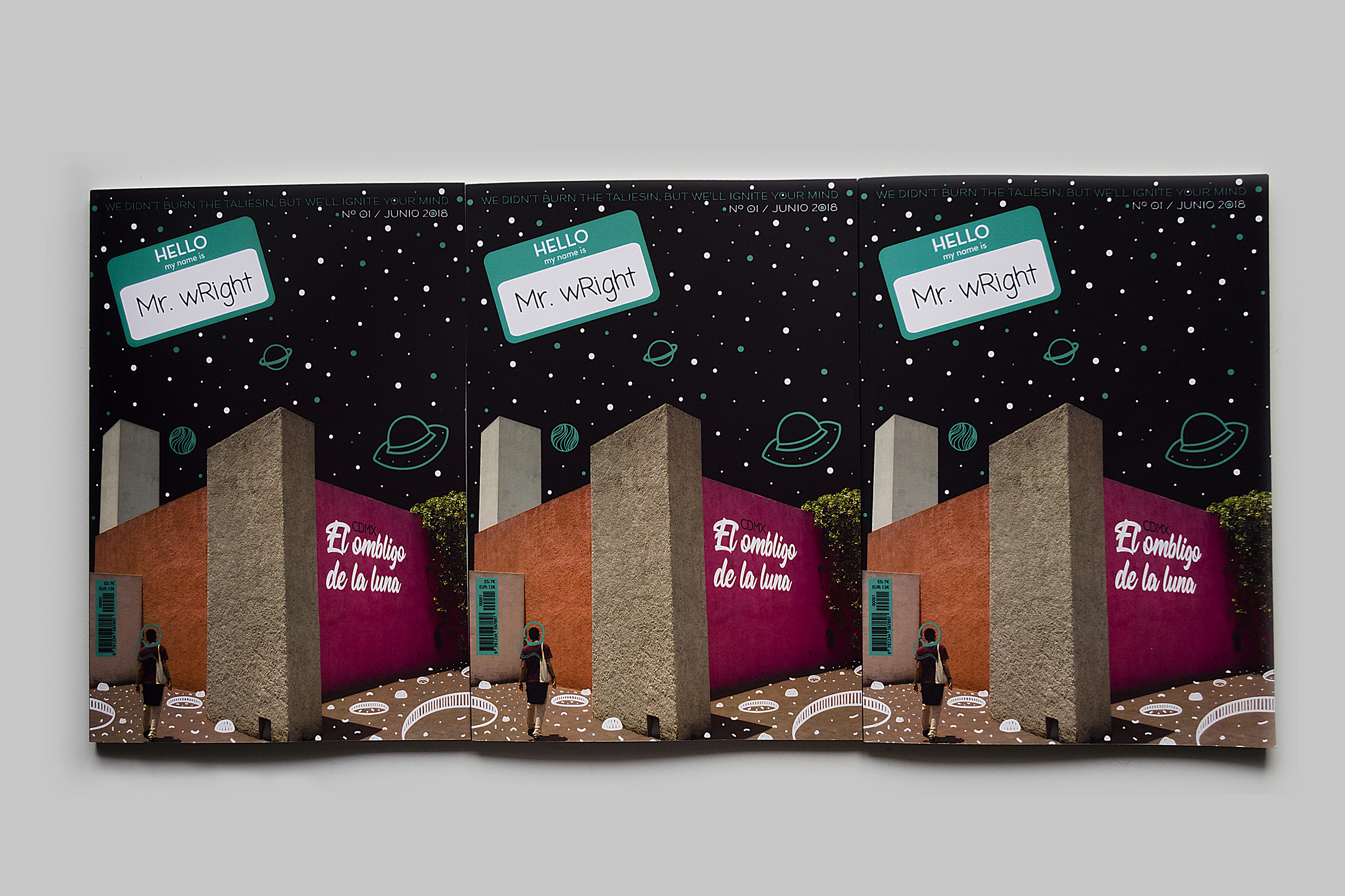 For this first number, serigraphic inserts are made on photographic paper. These sheets repeat the image used as a cover, which is illustrated as if it were space, since Mexico means “the navel of the Moon”.