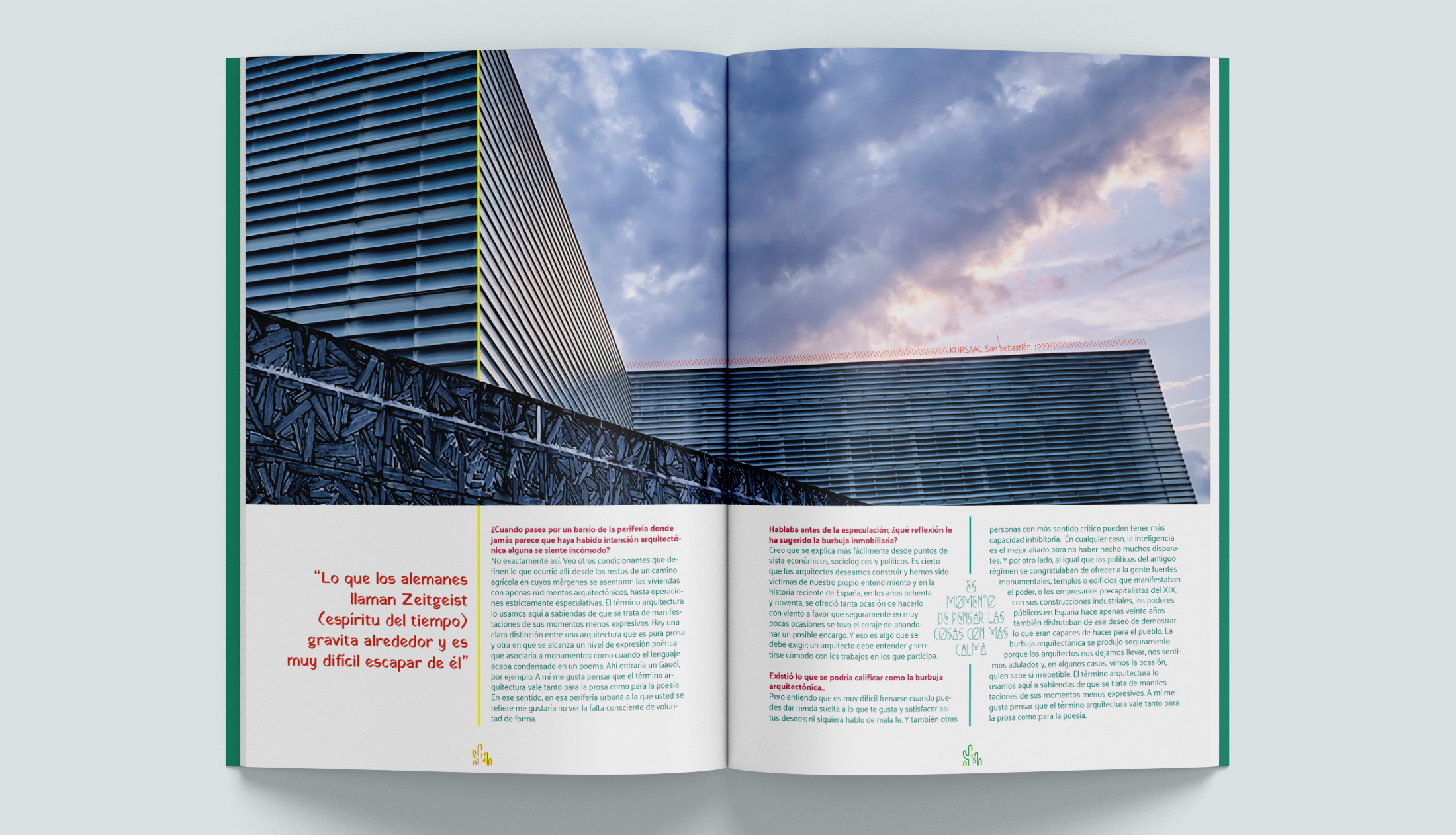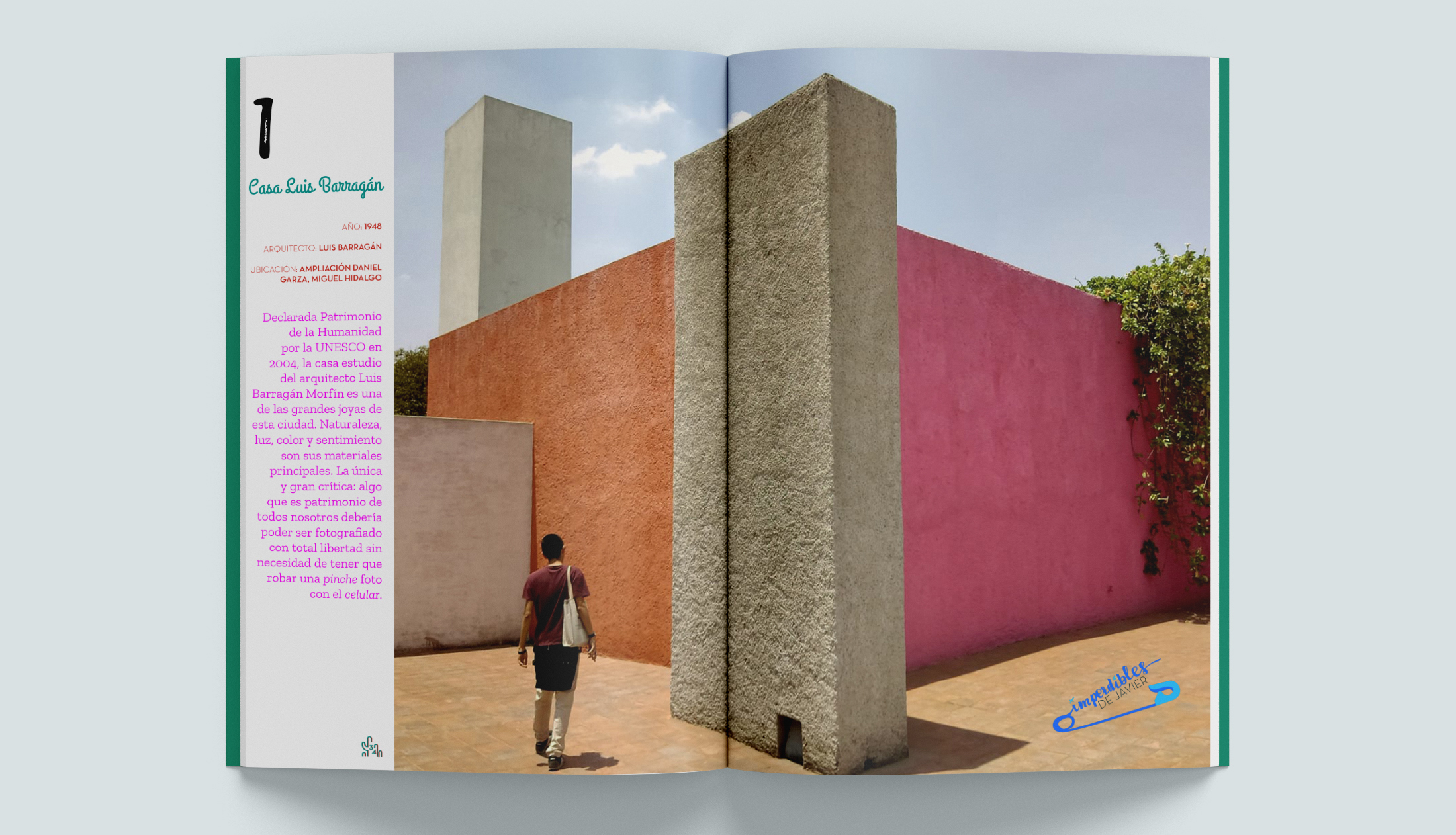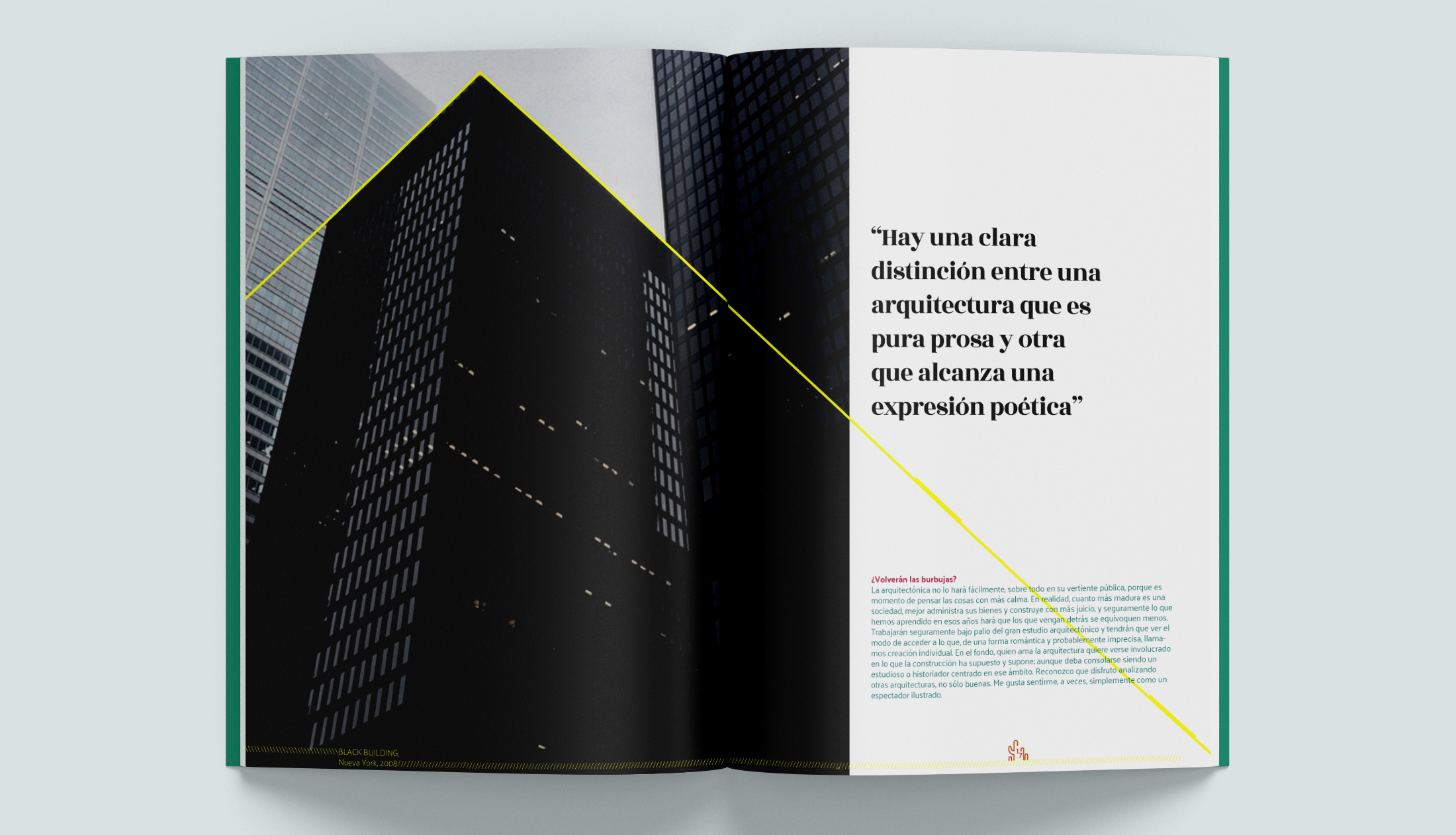 Editorial design, illustration, art direction... Creation, approach, and development of a zine about architecture, travel and lifestyles. It aims to be an independent magazine, which differs in aesthetics and contents of the current market. Its aesthetic is marked by the presence of photography, the typographic combination and the recurring use of the inclined bar to mark milestones throughout the publication. Taking care of all kinds of details from the kickers to the numbering, which varies in color throughout the publication. Classic editorial compositions are studied and marked columns are found, playing with colors, shapes and their dispositions.