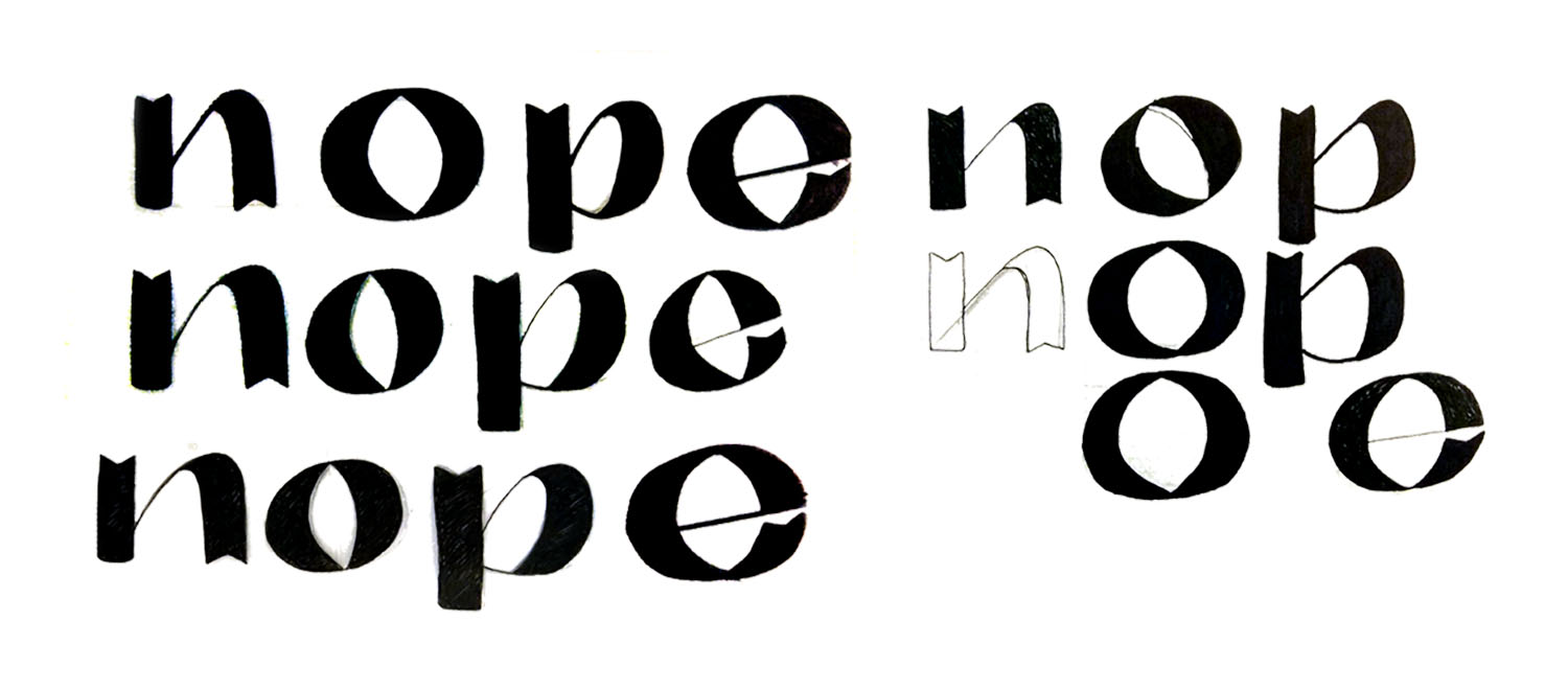 Formal experimentation in typography design studying the main characters that are required for the beginning of a typeface definition. On the next image a part of the manual drawing process can be seen.